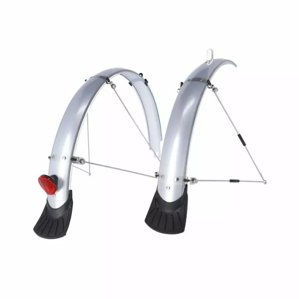 XLC plasthjulbeskyttere MG-F02 – robust polycarbonatkonstruktion – omfatter 3,2mm 4 V-støtter, monteringsbeslag osv. – reflekser – 3M Refelx-striber for optimal sikkerhed og synlighed – med bageste/bageste stænkskærme.